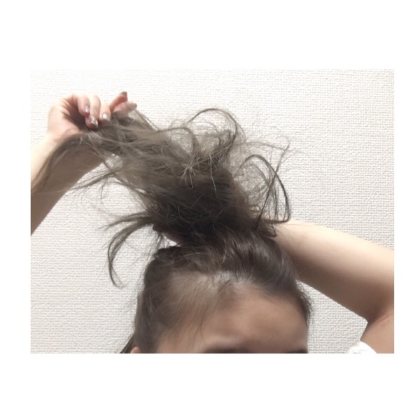 1.高い位置で結びます。